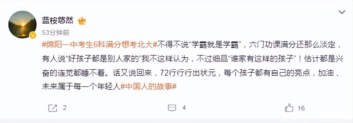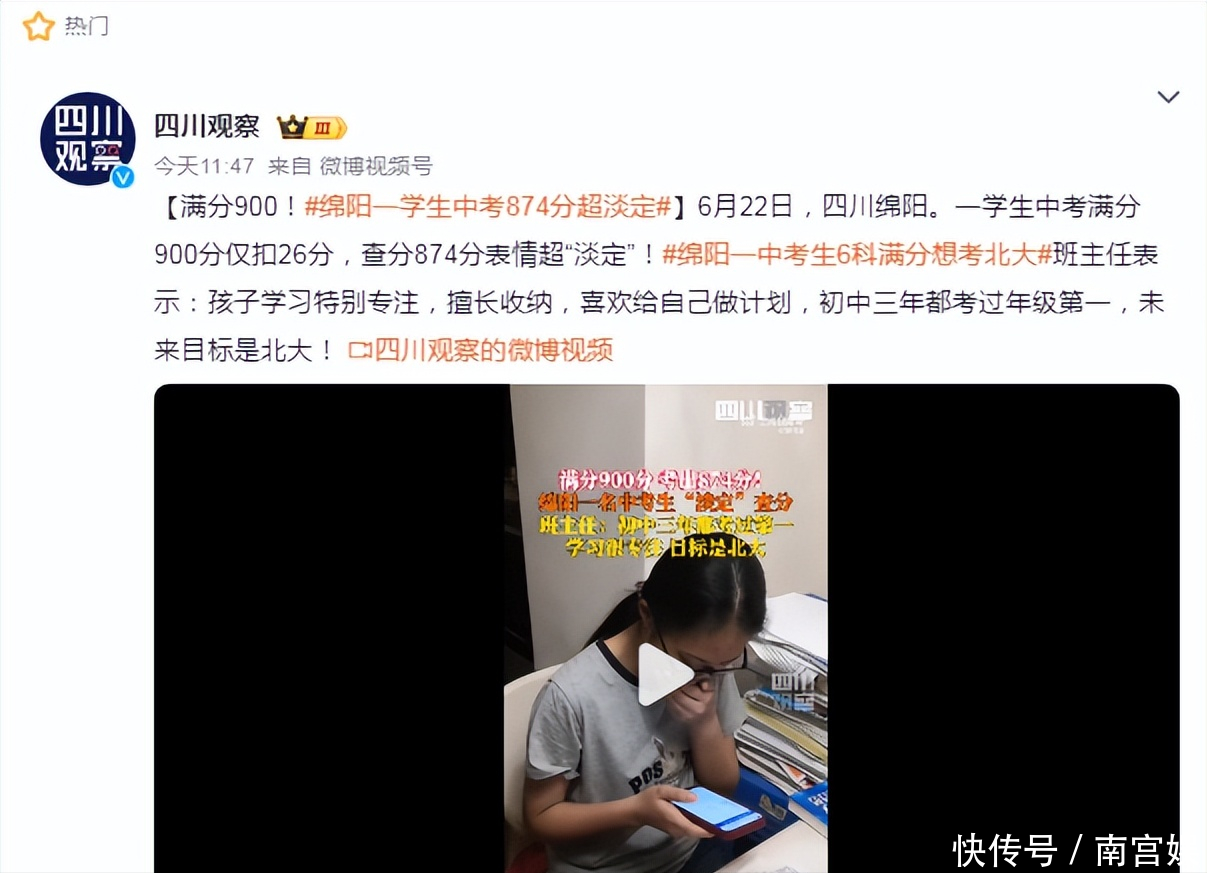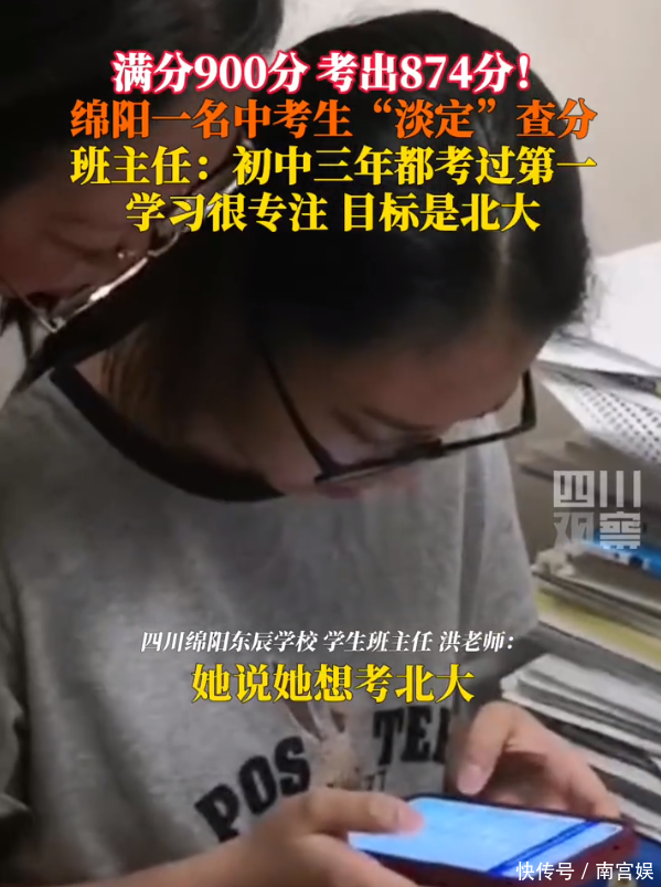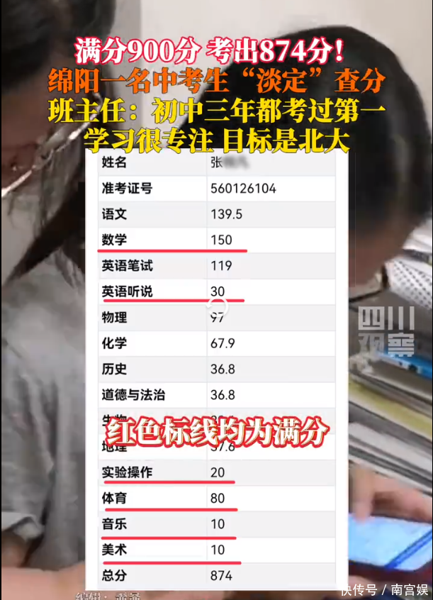 满分900,四川绵阳学霸考874分,查分现场超淡定,想考北大