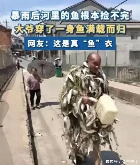 笑麻了!暴雨后大爷穿了一身鱼满载而归上热搜,笑死在评论区