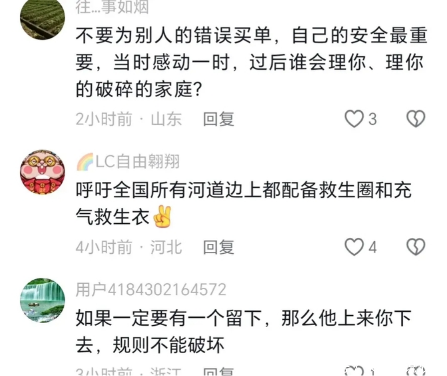 此外,有人呼吁在所有河流边都应配备救生圈和充气救生衣,以备不时之需。