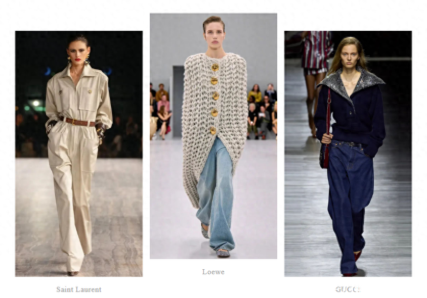 如果有小腿粗的问题,那可以用微喇裤修饰你小腿上的肉肉,对于梨型身材的姑娘来说,裤子稍微留有余量非常重要。如果你的腿没有很直,有点O型腿,那可以用宽松的老爹裤,直筒裤来修饰;如果是X型腿,那建议用微喇裤修饰小腿的弯曲。