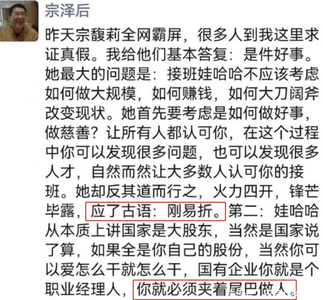 宗馥莉的辞职原因,二叔发一条朋友圈,终于说清楚了