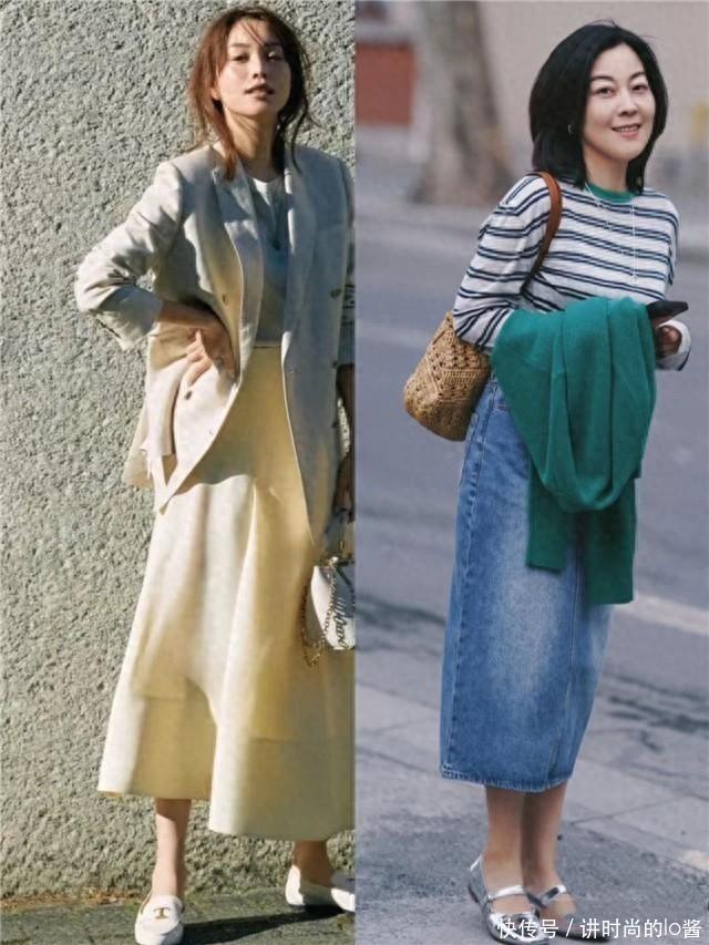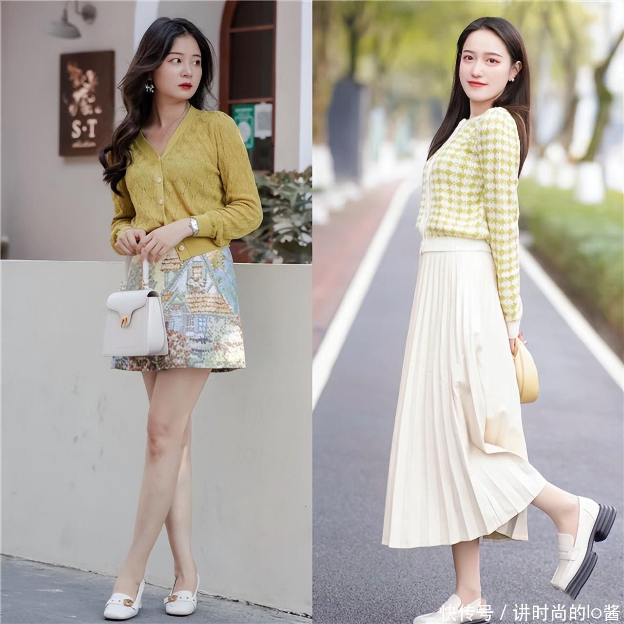 但如果你属于身高在160左右的标准身材,那无论是短裙还是长裙,都可以轻松驾驭。不过在选择短裙和鞋子搭配时,最好是加入袜子进行过渡,更能避免造型,显得头重脚轻也能起到减龄的效果。