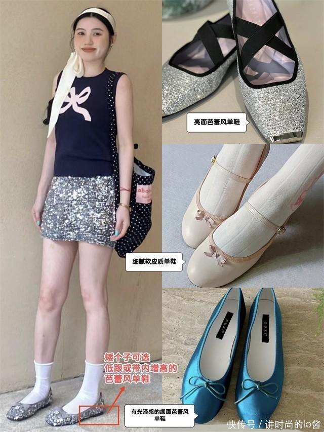 像是选用了亮面材质的芭蕾鞋,就很有少女感;而软皮质感的芭蕾鞋,则更加的舒适高级。要想显得成熟一些,更建议大家都尝试选用了缎面质感的芭蕾鞋,搭配裙子更能演绎出轻熟风。