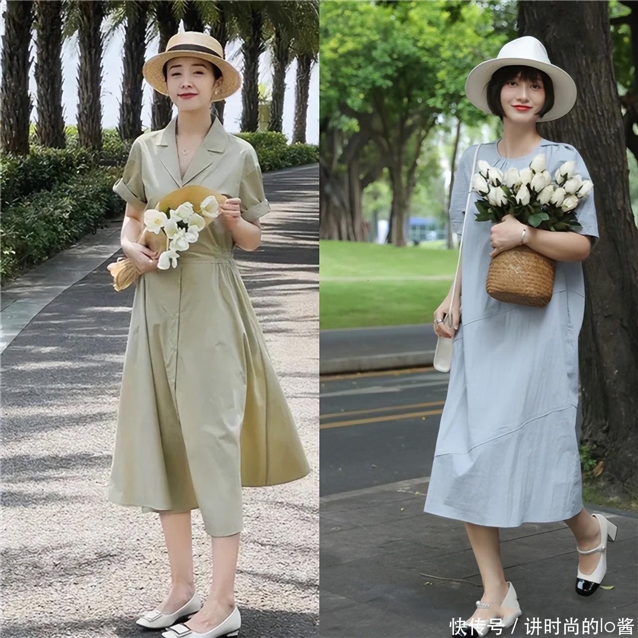 更建议大家选择自带收腰设计的连衣裙和鞋子搭配,无论是搭配平底鞋还是低跟鞋,都能够有效的分割上下身的比例穿出大长腿。
