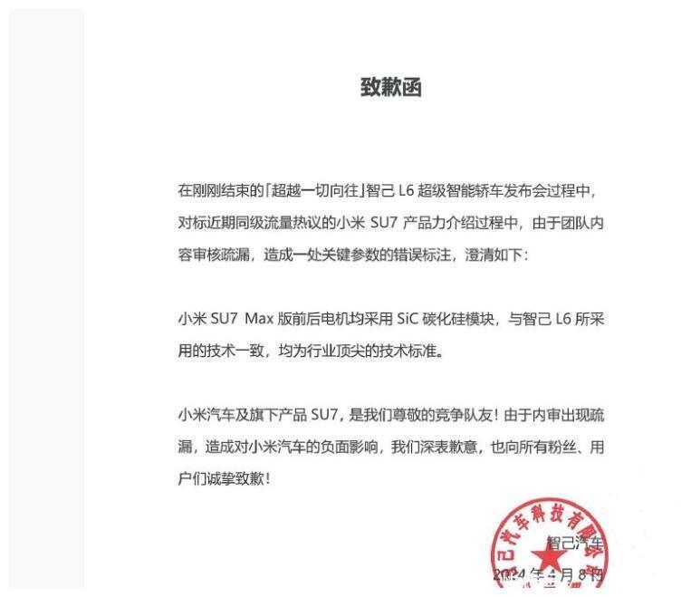 智己第一封致歉函