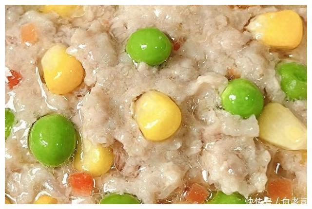猪肉,豌豆粒,胡萝卜,玉米粒。
