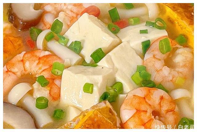 鸡蛋,嫩豆腐,白玉菇,香菇,虾仁,枸杞子,葱花。