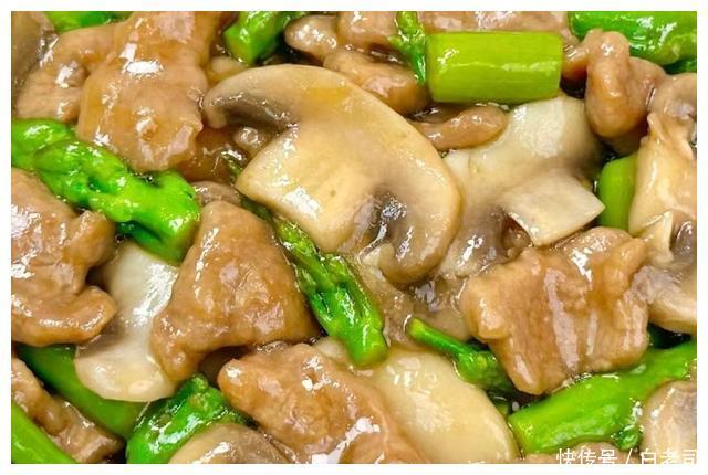 芦笋,口蘑,牛肉,酱汁,姜片。