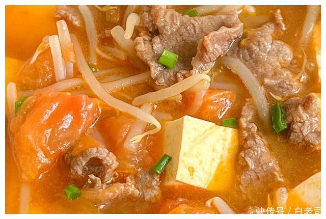 牛肉,番茄,嫩豆腐,绿豆芽,姜片。
