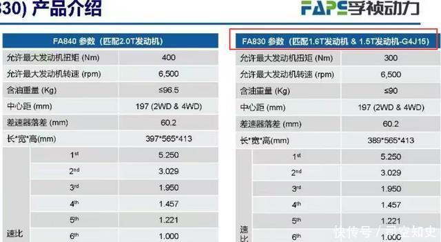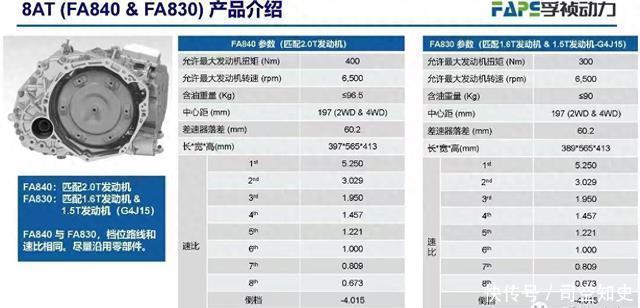 从产品介绍也来,也确实是如此,两者唯一的差别就是变速器的长度单位了,FA840是397mm,FA830则是389mm,当然还有含油量的差别,其它的基本一致了,看来两者甚至都是共线生产的,可以实现快速切换,当然各自匹配的动力总成也不尽相同,关键还是最后出现的第四代1.5TGDI米勒发动机,这本身意味着所有的一切都在按照下线仪式上机型匹配车型规划在逐步推进之中,下一步就看何时能出现第四代1.5TGDI匹配8AT的实车路试谍照。