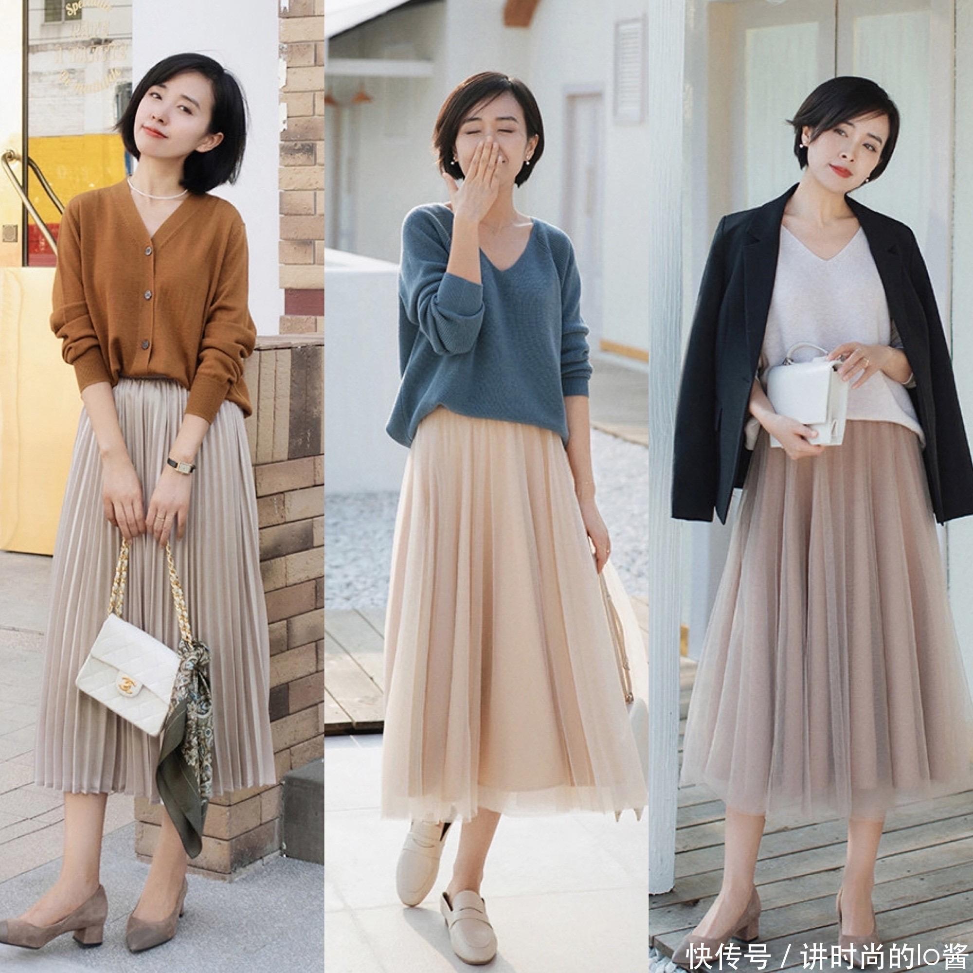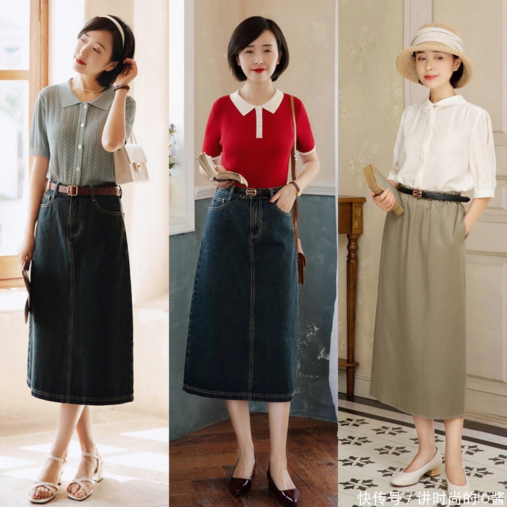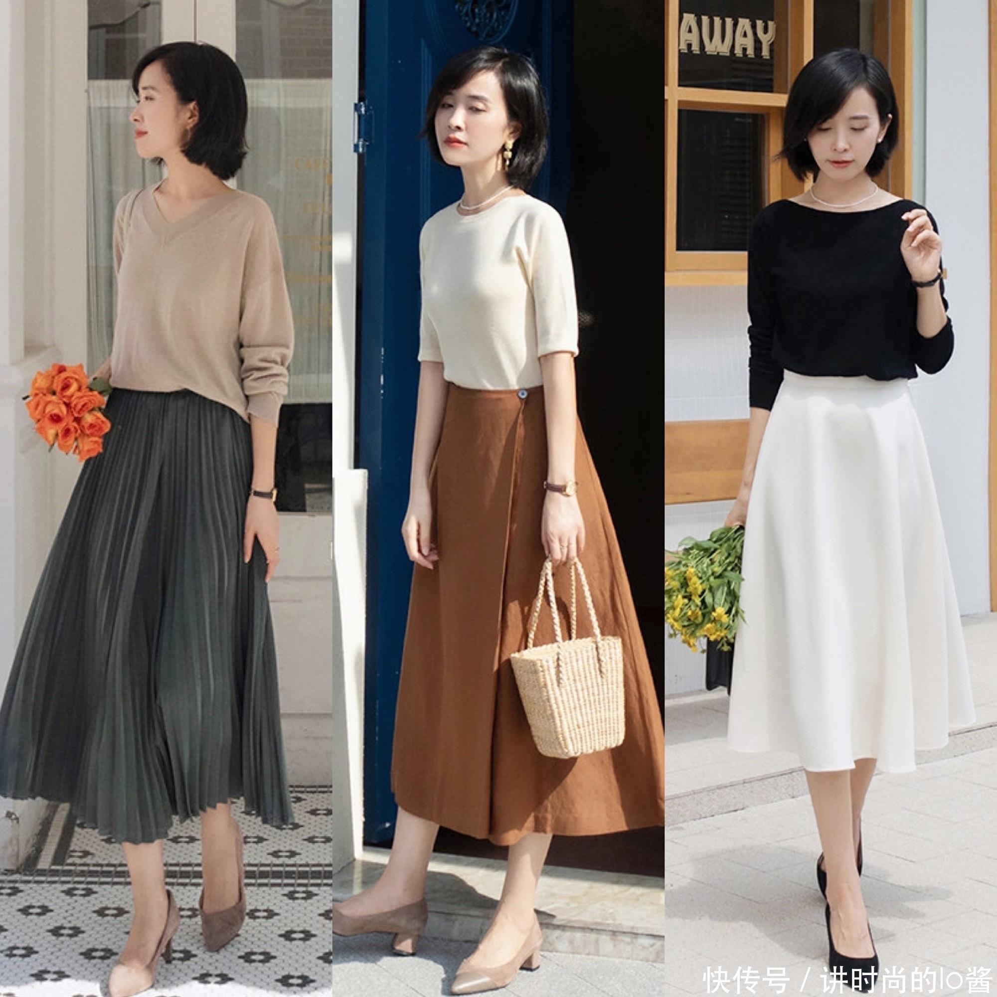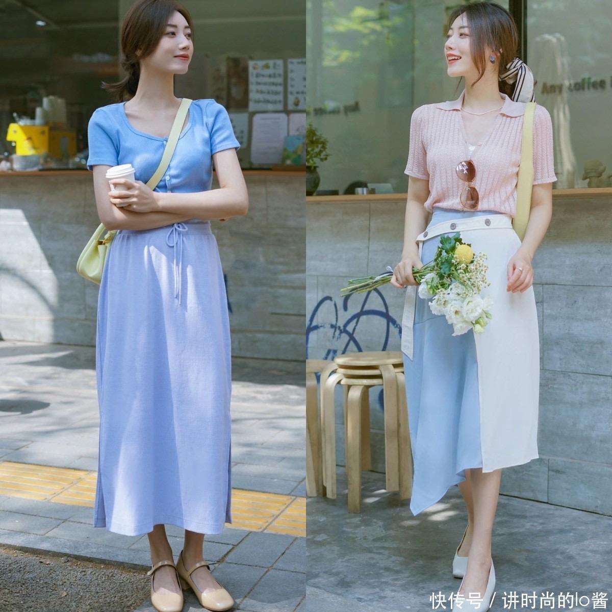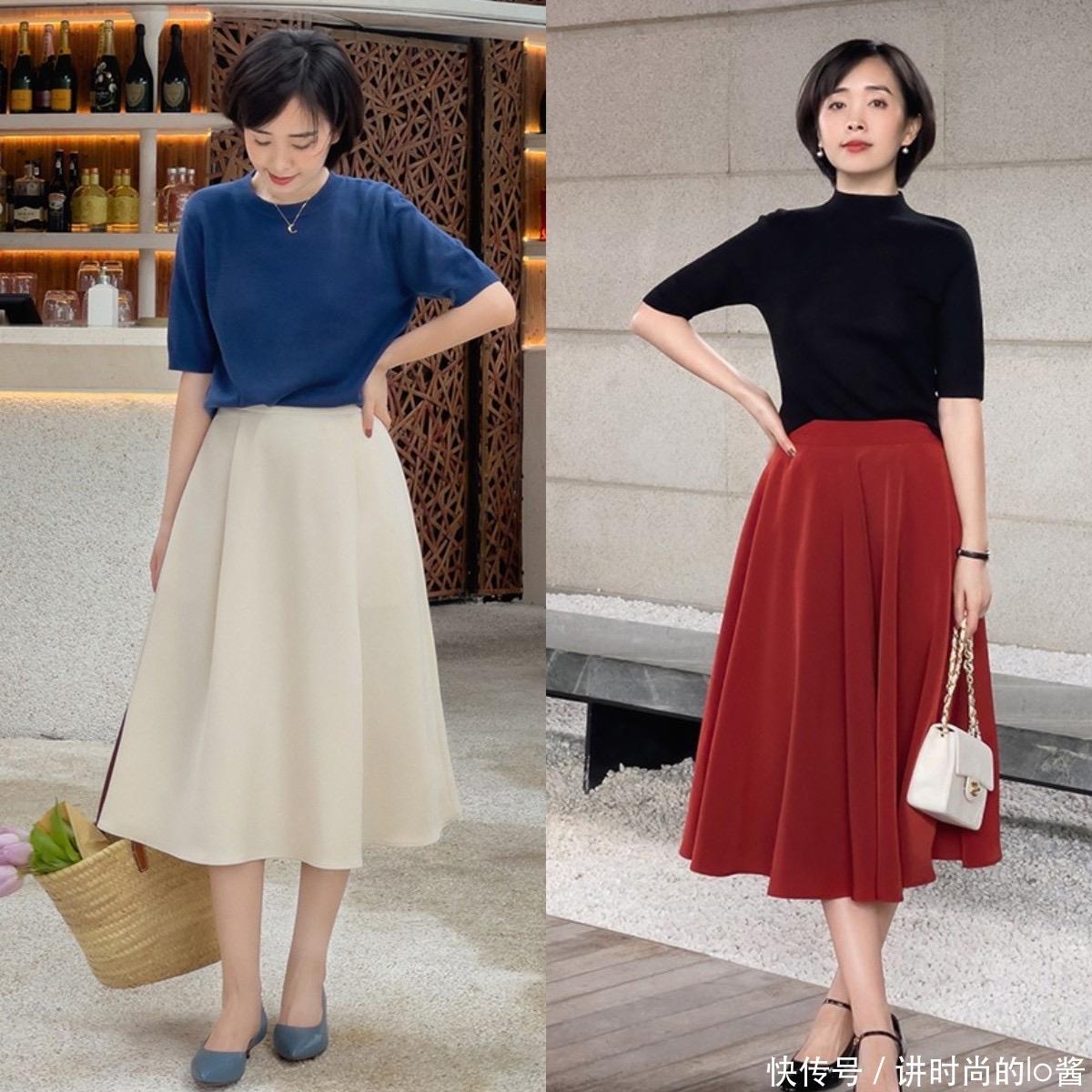在现实生活当中,很多女生的身材都面临着胯宽、腿粗的问题,倘若你的上半身比较显瘦,就可以选择修身一点的T恤针织衫,搭配上微宽松版型的直筒裙、A字裙,便可以凸显出好身材。