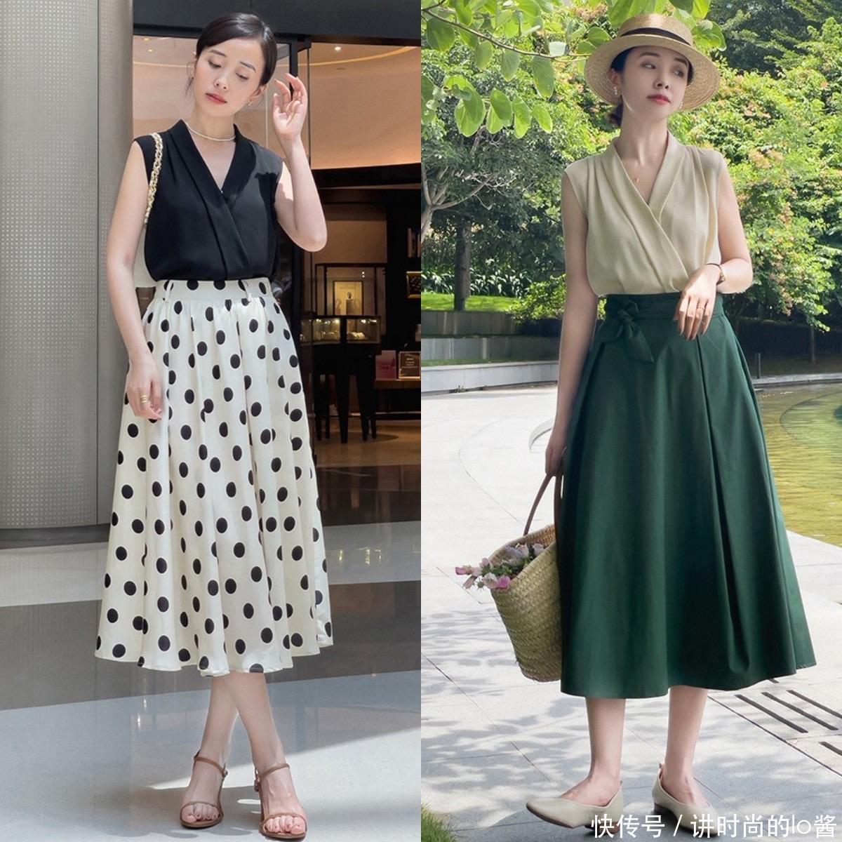 公式③无袖衫+伞裙+春鞋