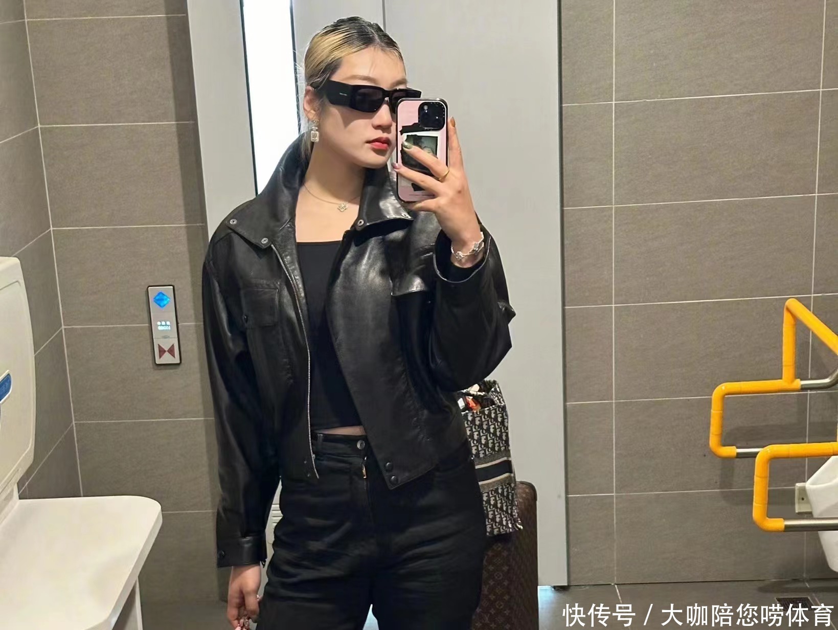 女篮李梦晒“厕所照”!穿黑夹克+戴墨镜身材傲人,露性感小蛮腰