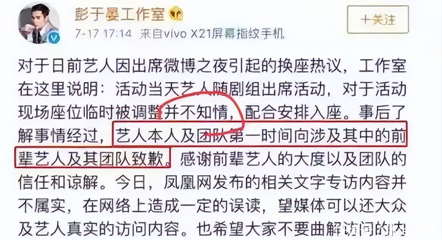事后,彭于晏发现此事的严重性便表示是主办方临时更改,并且送上道歉。