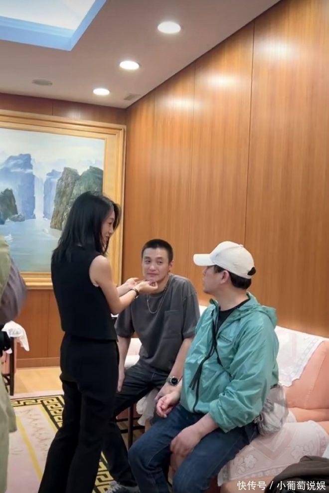 朱丹探班老公,和周一围拉手捏下巴秀恩爱,张颂文在一旁被喂狗粮