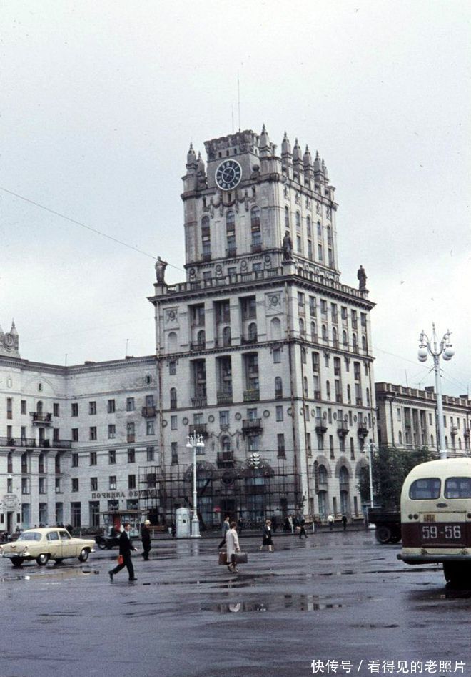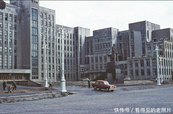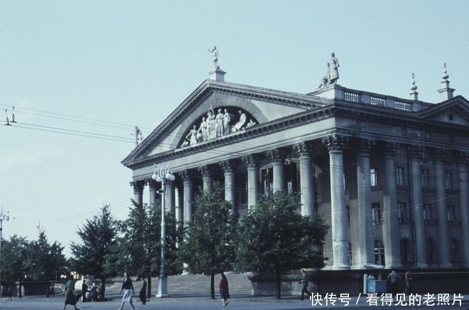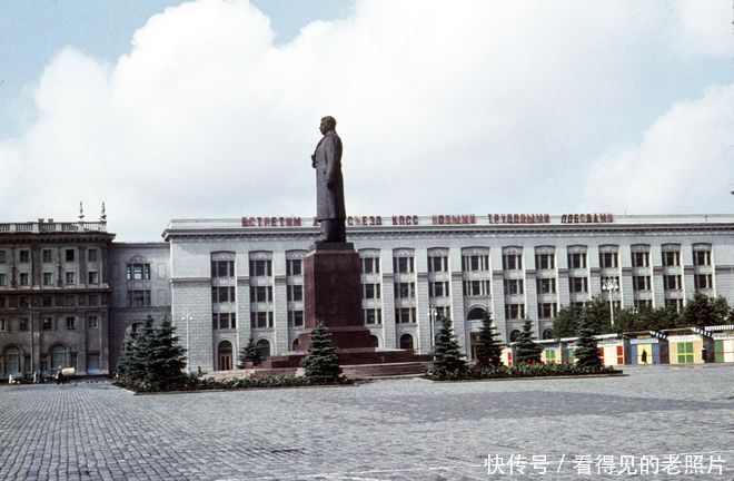 老照片 1961年白俄罗斯首都明斯克 高高矗立的斯大林雕像