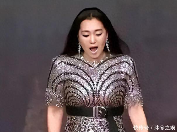 给人的整体感觉脖子短,肩膀宽,手臂粗壮,脸上还有点婴儿肥,裙子又把腿部优势遮挡,感觉不像是明星,就像普通人上台。