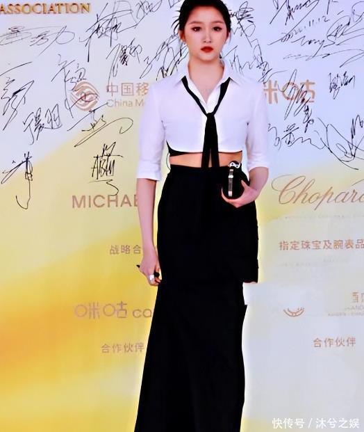 然而再一次关晓彤出席,确实把肩膀挡了起来,穿上了半袖,搭配高领,但这一次的衣服却选择露腰,上面紧,下面紧,就把关晓彤肚子上的肉“挤”了出来。
