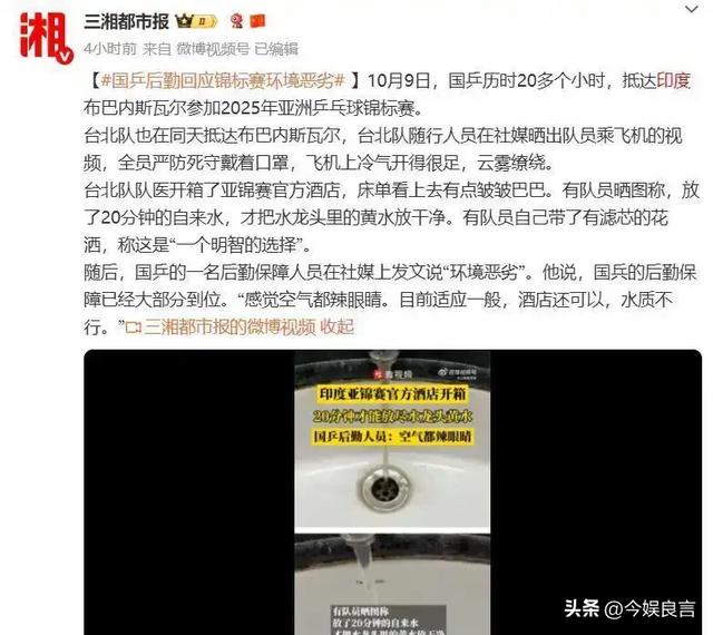 国乒团队被迫自带过滤花洒和水质净化设备。