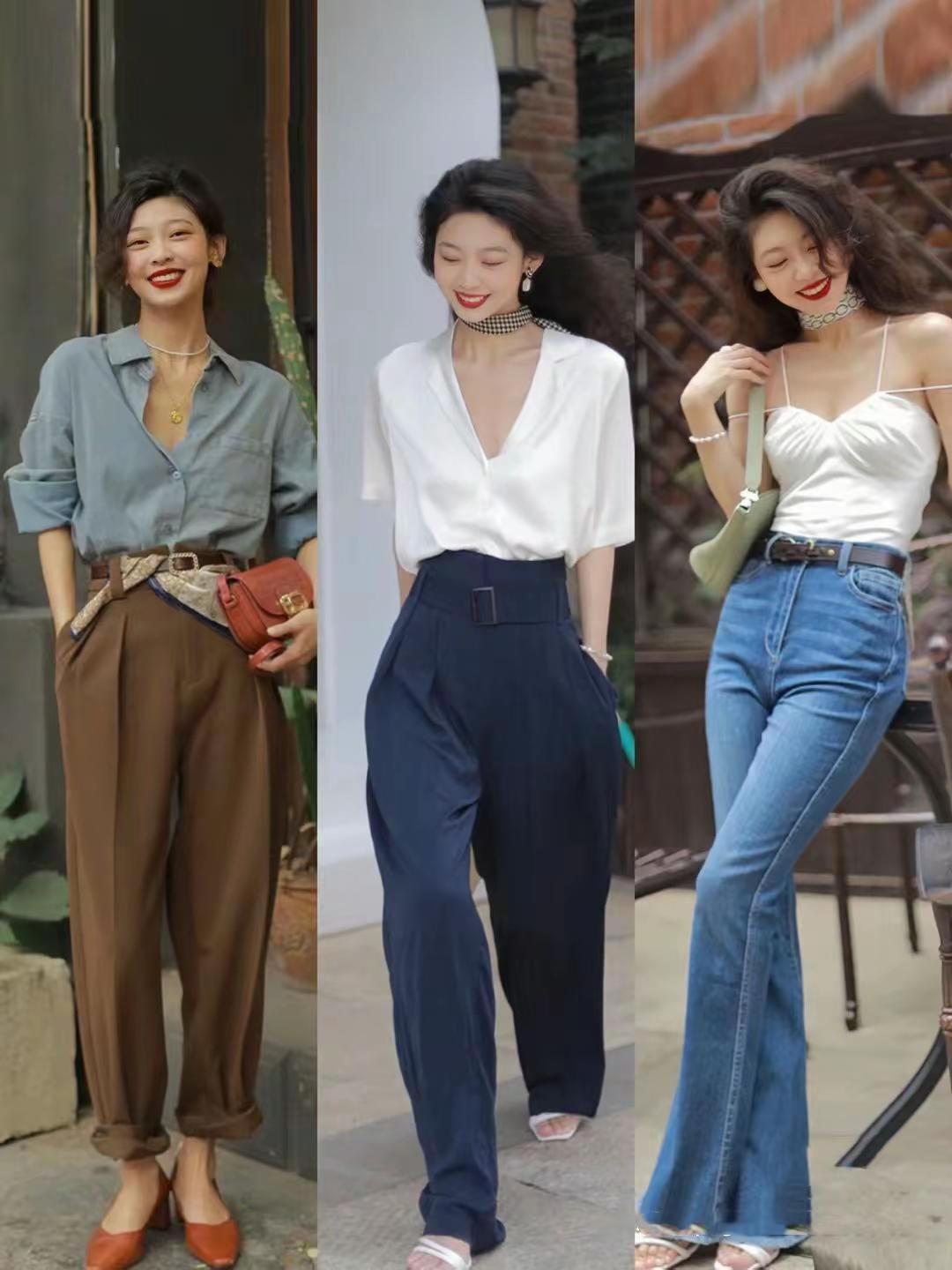 ④、衬衫和吊带搭配长裤的区别