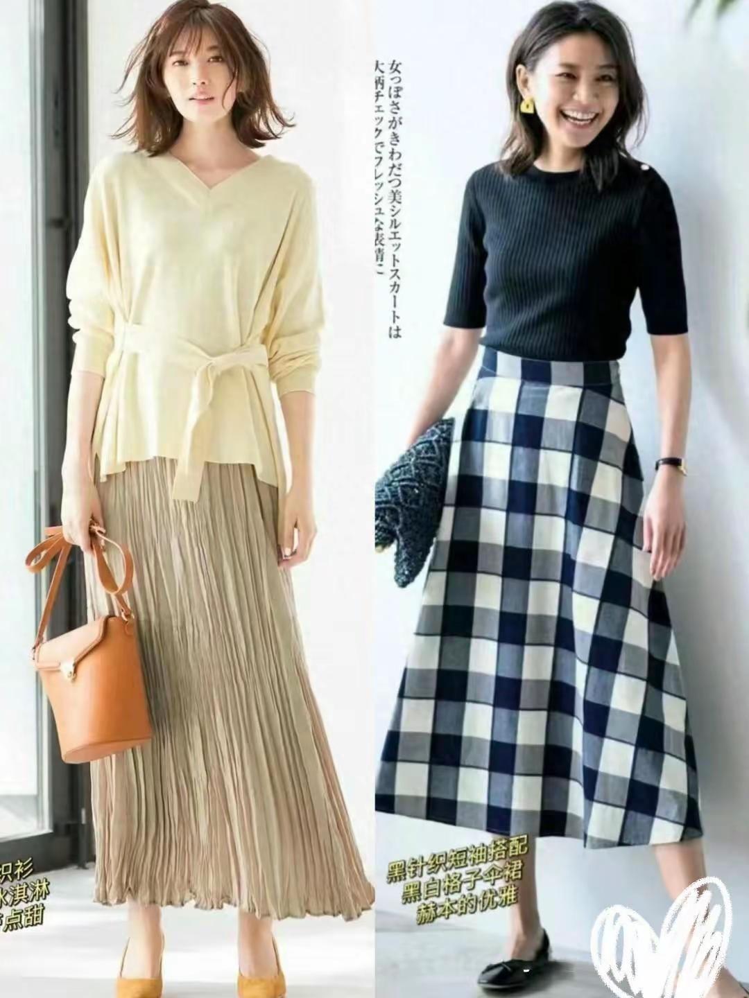 半身裙也有它的优势,如腿型粗脚胯宽或者是梨形身材的女性都能很好地把这些缺点藏起来,修饰出流畅利落的身材。