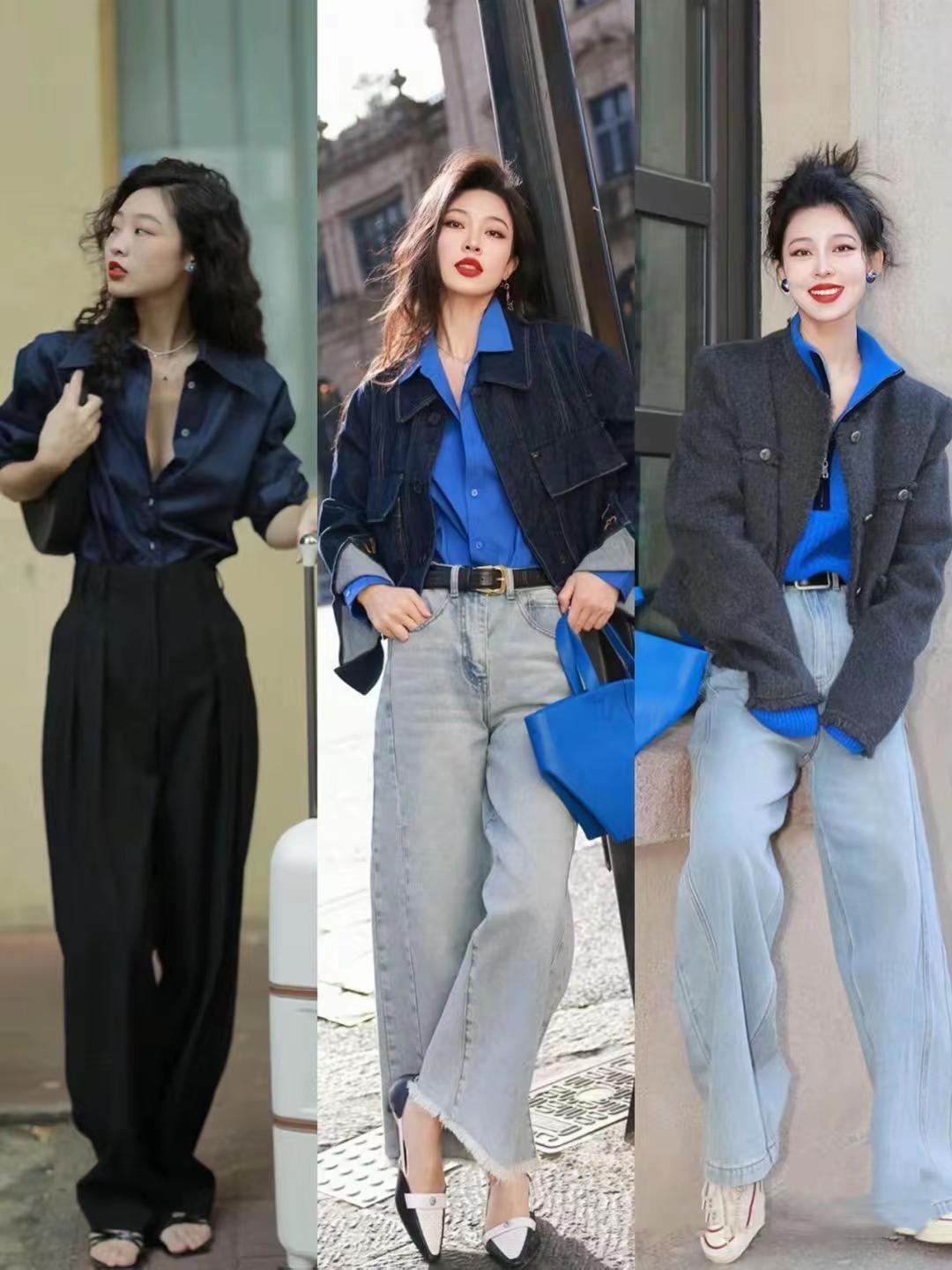 ②、黑色的衬衫搭配牛仔裤,最适合普通女性,不过重点要看面料