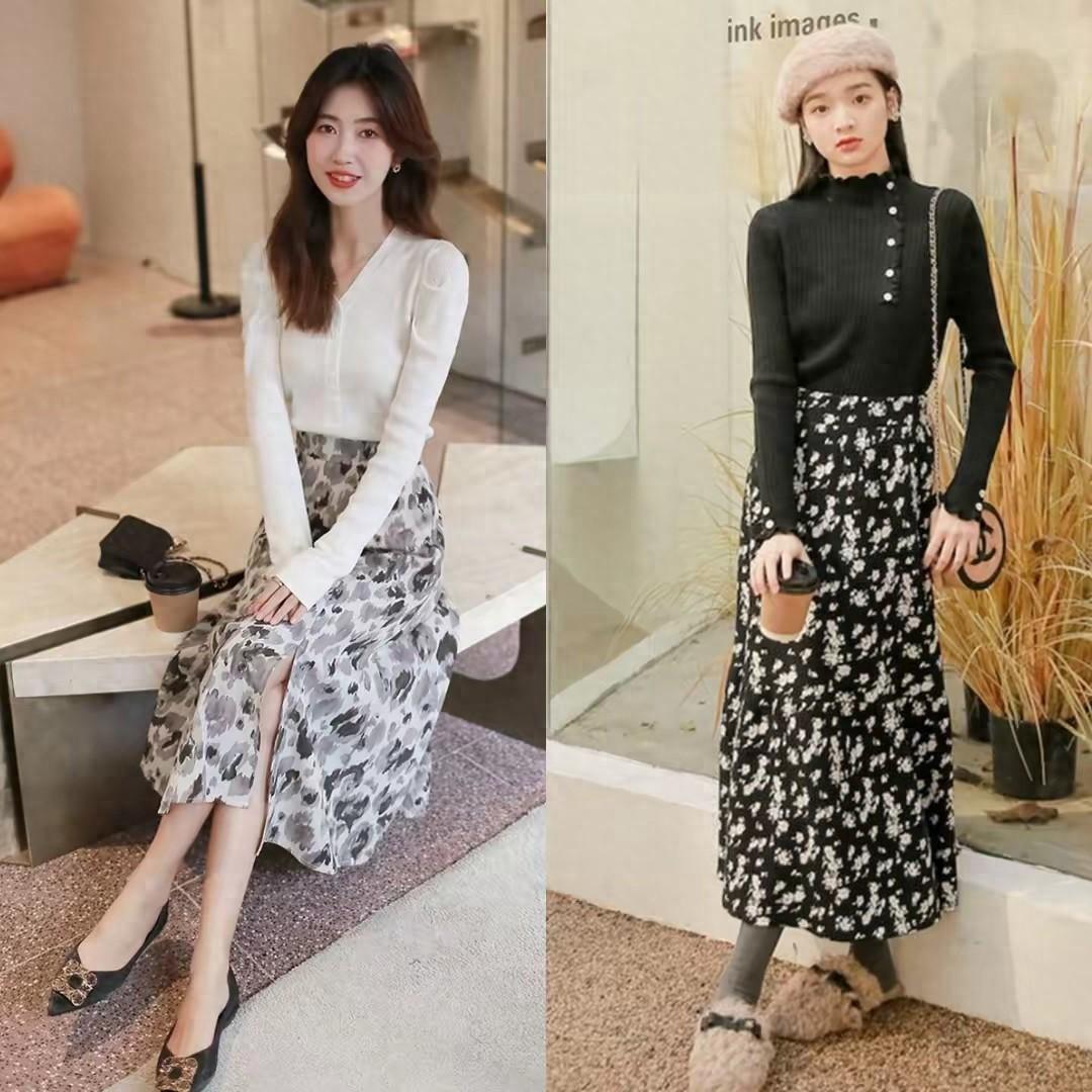 ①、针织开衫搭配上半身裙,营造出属于自己的独特风格